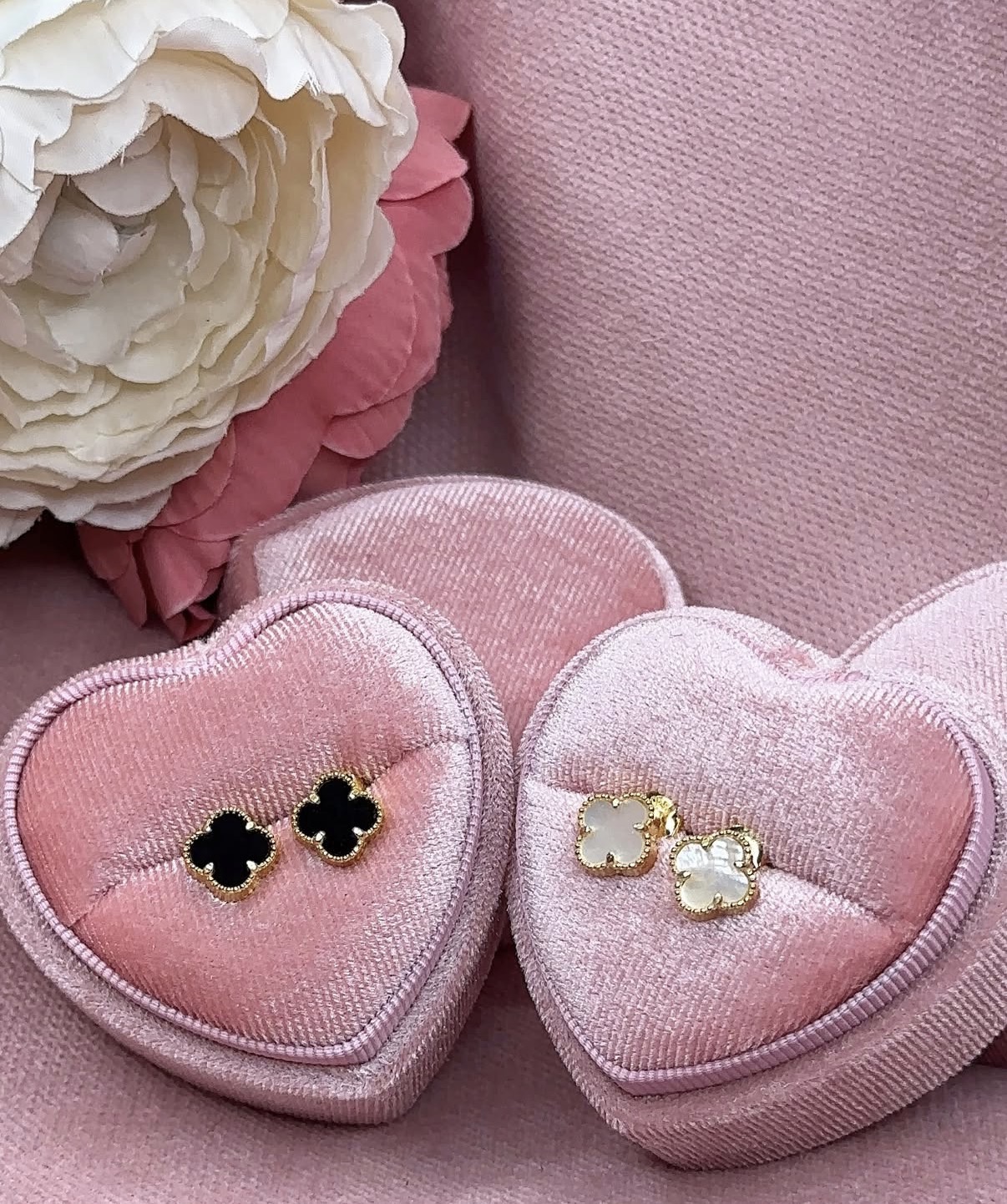 Minđuše Cvetić Detelina – IT model inspirisan klasičnim floralnim dizajnom. Dostupne u srebru sa crnim kamenom i u 14k pozlati sa belim kamenom. Efektne i bezvremenske.