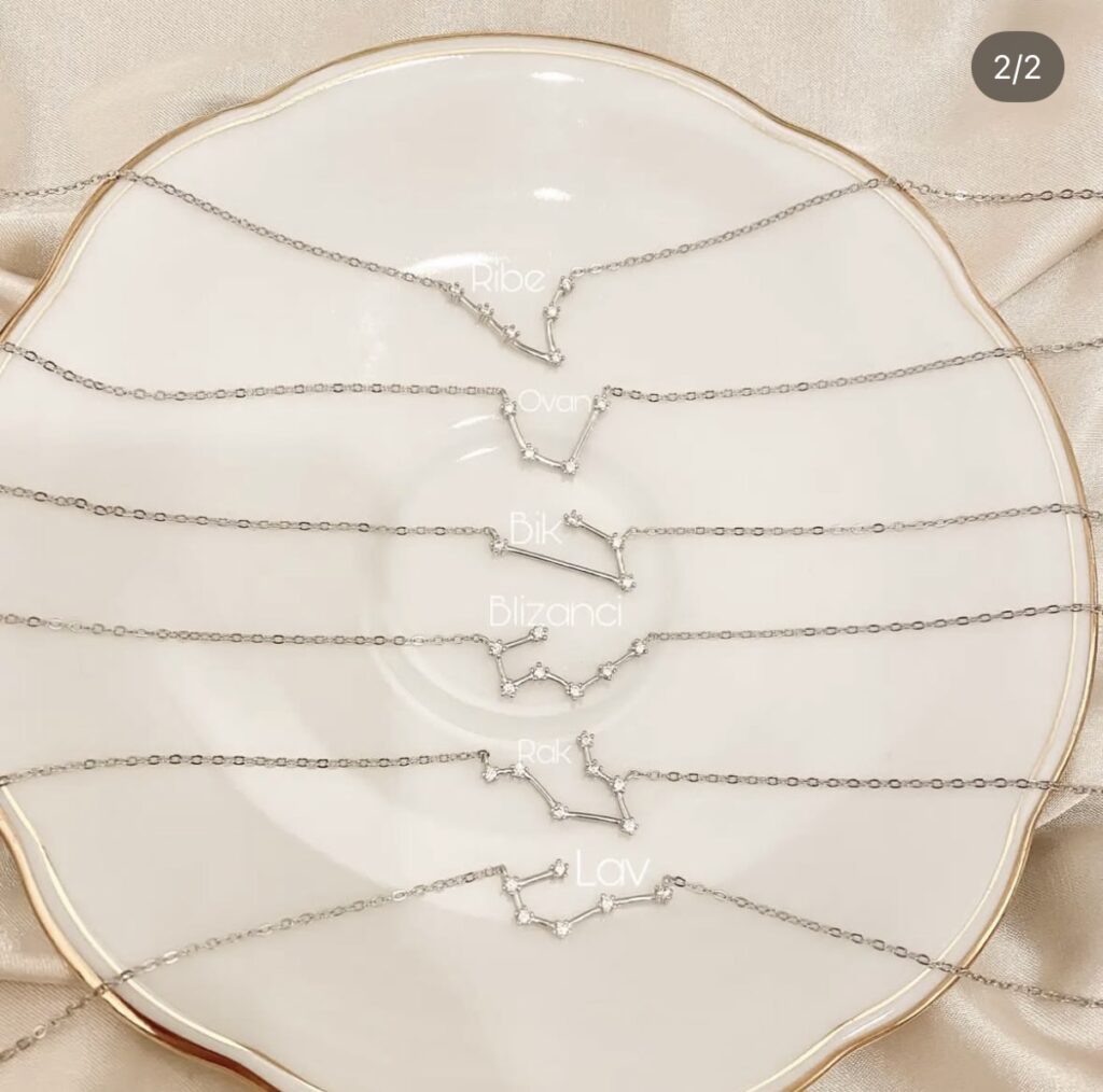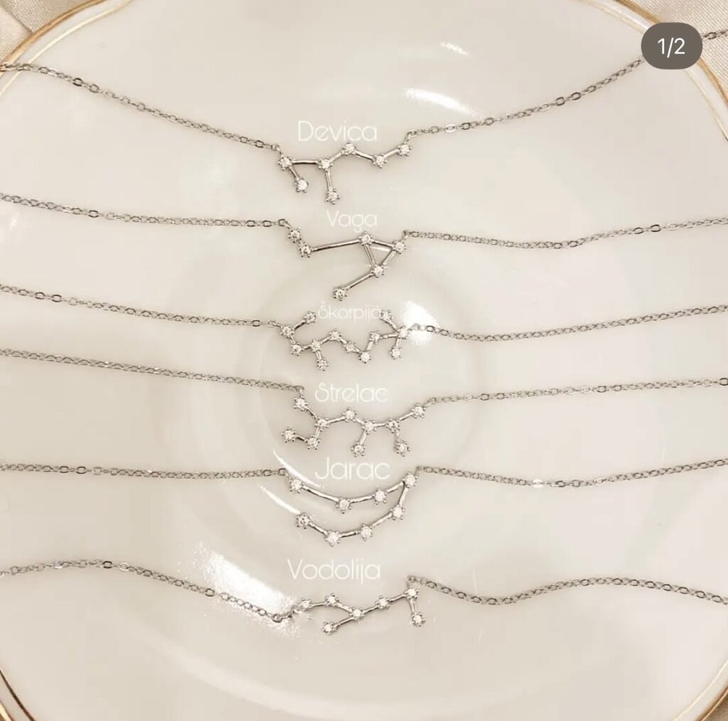 Ogrlice Horoskop Sazvežđe su nežan i simboličan komad nakita koji predstavlja sazvežđa svih 12 horoskopskih znakova. Svako sazvežđe je pažljivo izrađeno, sa sitnim detaljima i diskretnim cirkonima koji daju suptilan, zvezdani sjaj.