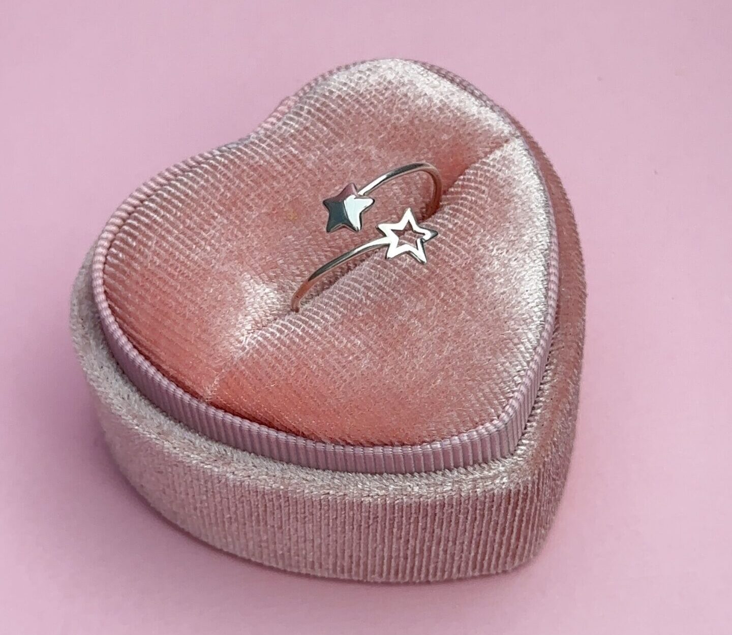 Prsten Ukrštene Zvezdice je suptilan i elegantan tanak prstenčić koji kombinuje nežnost i zanimljiv detalj. Sa prednje strane ukrštaju se dve zvezdice – jedna glatka i puna, dok je druga samo okvir, stvarajući moderan, vizuelno interesantan izgled.