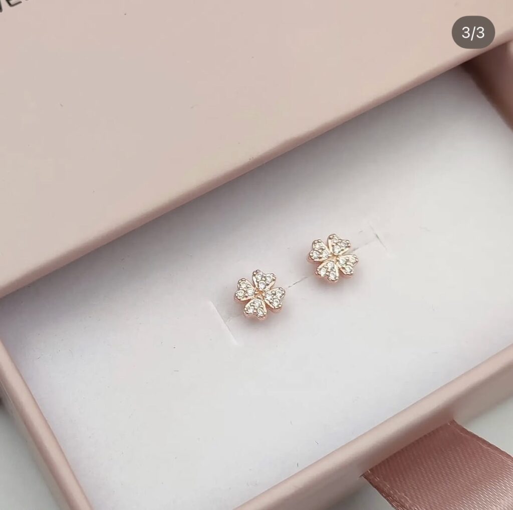 Minđuše Rose Gold Mini Detelina su nežan, ali upečatljiv komad nakita koji kombinuje eleganciju i simboliku. Sitna detelina ispunjena sjajnim cirkonima naglašava luksuzan, blistav izgled, dok oblik donosi poruku sreće i pozitivne energije.