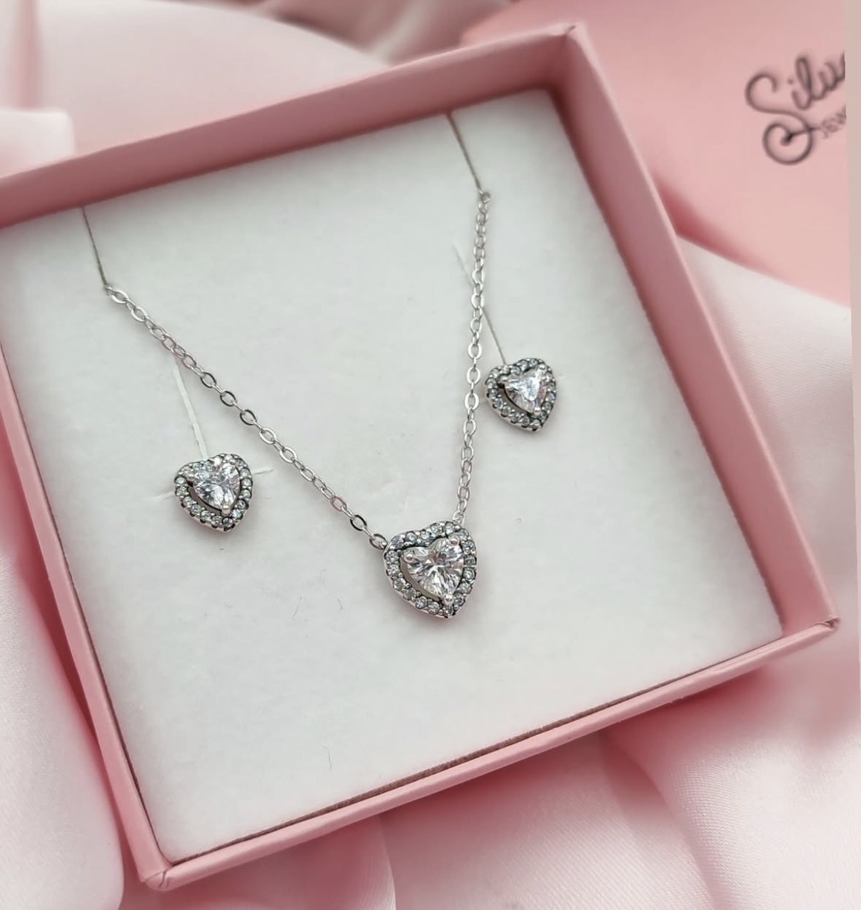 Set Srce Kristal Cirkoni čine ogrlica i minđuše uz uvo sa identičnim motivom – kristalno srce okruženo sitnim, blistavim cirkonima. Centralni kristal daje intenzivan sjaj, dok cirkoni oko njega dodatno naglašavaju eleganciju i luksuzan izgled.