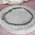 Tennis narukvica je sinonim bezvremenske elegancije i sofisticiranog stila. Nastala je kao sportski i modni simbol kada ju je slavna teniserka Kris Evert nosila na meču, a danas predstavlja jedan od najpoželjnijih komada nakita. Svaki kamen u nizu pažljivo je postavljen tako da čini savršen krug svetlucavih tačaka oko zgloba, dajući utisak lakoće i luksuza u isto vreme. Idealna je za svečane prilike, ali i kao diskretan detalj koji svakodnevnom izgledu dodaje dozu glamura. Ovaj komad nakita je klasik koji nikada ne izlazi iz mode i savršen je poklon za posebne trenutke.